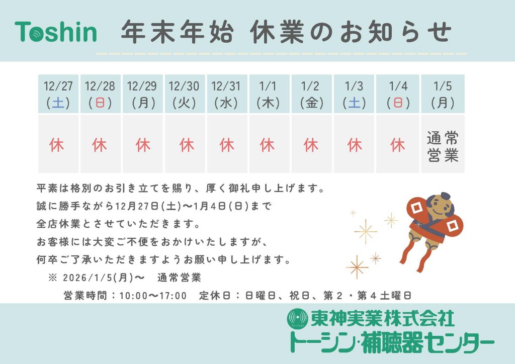 誠に勝手ながら12月27日(土)~1月4日(日)まで